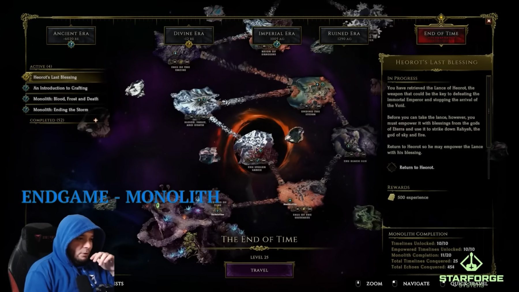 A kampány meglehetősen korai szakaszában a játékosok elérik a „The End of Time” nevű központi csomópontot. Ezt elérve a Monolith of Fate elérhetővé válik a keleti oldalon található portálon keresztül (a legalacsonyabb szintű ellenségek ekkor 58-on vannak, és még mindig értékes kampányjutalmakat kell megszerezni, így a legtöbb játékos folytatni akarja a kampányt, és később tér csak vissza a Sors Monolitjához).