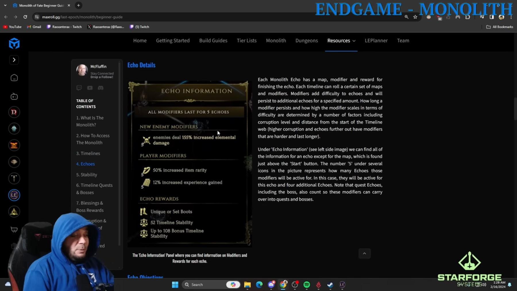 Minden egyes Monolith Echo-hoz tartozik egy térkép, egy módosító és egy jutalom a befejezésért. Minden idővonal egy bizonyos számú térképet és módosítót rollol. A módosítók nehézséget adnak a visszhangokhoz, és egy meghatározott ideig fennmaradnak a további visszhangoknál.