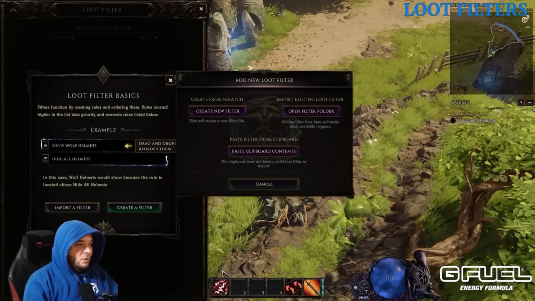 Fontos tudnod, hogy a Maxrollon (ahogy fent is említettük), külön bekonfigurált Loot Filter van minden buildhez és ezeket le is lehet tölteni az oldalról! A letöltött fájlt nyisd meg pl egy Notepad-ban, jelöld ki az egészet (CTRL+A), tedd vágólapra (CRTL+C), majd menj vissza a játékba és nyisd meg a Loot Filter ablakot. A „Create A Filter” gombra kattintva a felnyíló ablakban kattints a „Paste Clipboard Contents” gombra és azt fogod látni, hogy egy új Loot Filter jött létre egy csomó szabállyal.