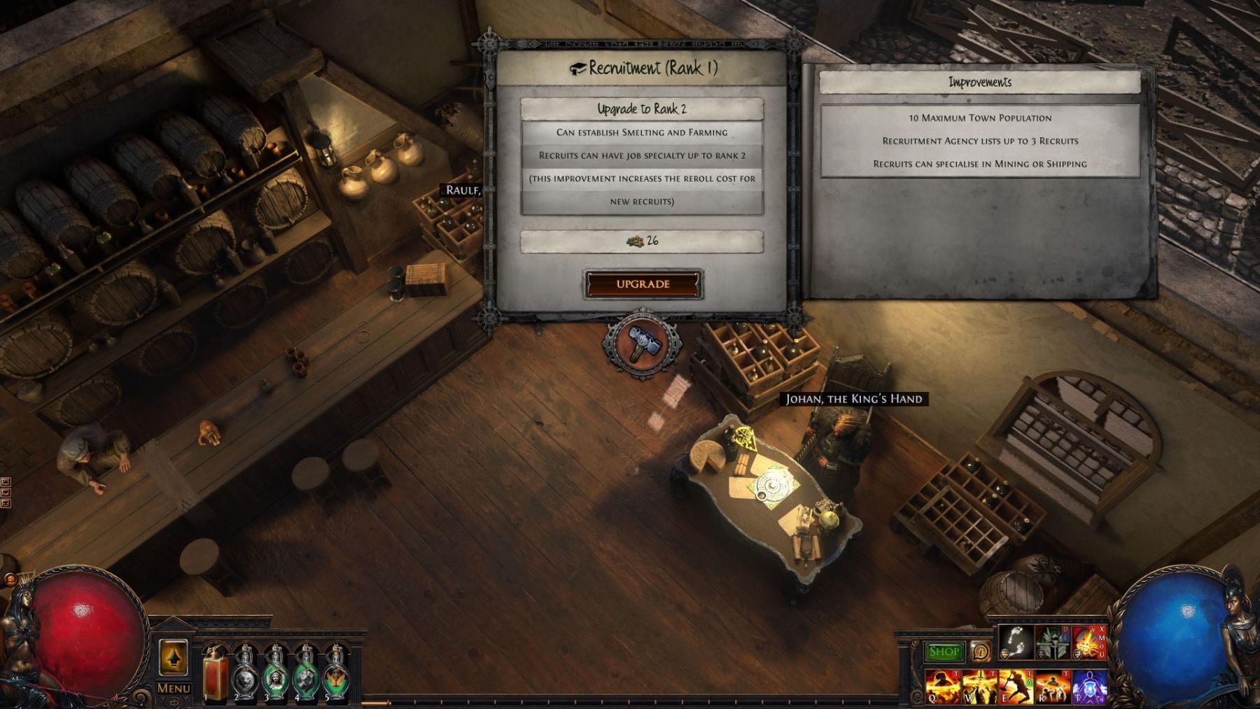 Theopolis nem egy nap alatt épült fel, és Kingsmarch sem fog, de sok kéz gyorsabb munkát végez. Menj a városba, és vegyél fel szakképzett munkásokat, akik segítenek neked a bányászatban, az olvasztásban, a varázstalanításban, a földművelésben és más, Kingsmarchban szükséges munkákban. Észre fogod venni, hogy minden embernek megvan a szakterülete és a bérköltsége. Rajtad áll majd, hogy tetszésed szerint alkalmazz és elbocsáss. A liga során minden egyes munkakörhöz a tökéletes alkalmazottakat fogod keresni. Ha már megvannak, fizetve, biztonságban és életben kell tartanod őket.