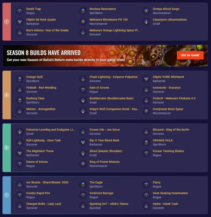 Íme a három legismertebb Diablo IV-es oldal listája, a Maxroll, a D4builds és a Mobalytics. A képek kattintásra nagyíthatók, a címre rálinkelem az oldalt, ahonnan elérhetők a buildek.