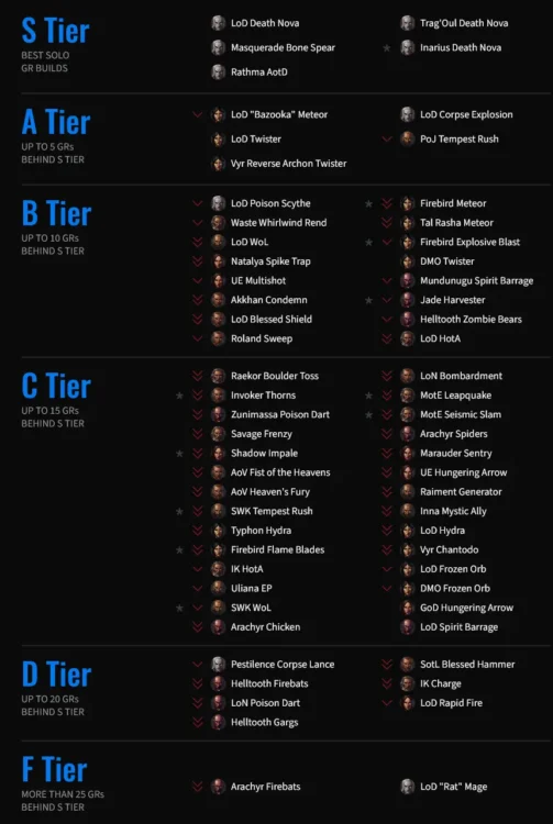 Maxroll.gg – Diablo III Season 37 Solo Tier List (kattintásra teljes méretben megtekinthető)