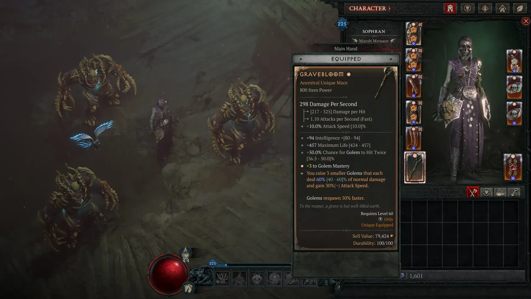 - 3 kisebb gólemet idézel meg, amelyek mindegyike a normál sebzés 40-60%-át okozza, és 30%[+] támadási sebességet kapsz. Gólemeid 50%-kal gyorsabban élednek újjá.