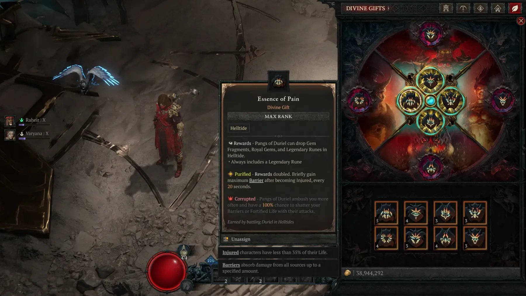 - Corrupted Gift: Duriel Gyötrelmei gyakrabban támadnak rád, és 100% eséllyel összetörik a Barriered vagy a megerősített életedet (Fortify) a támadásaikkal.