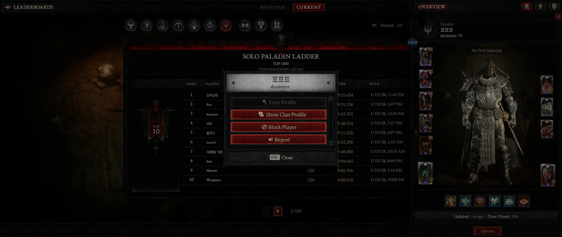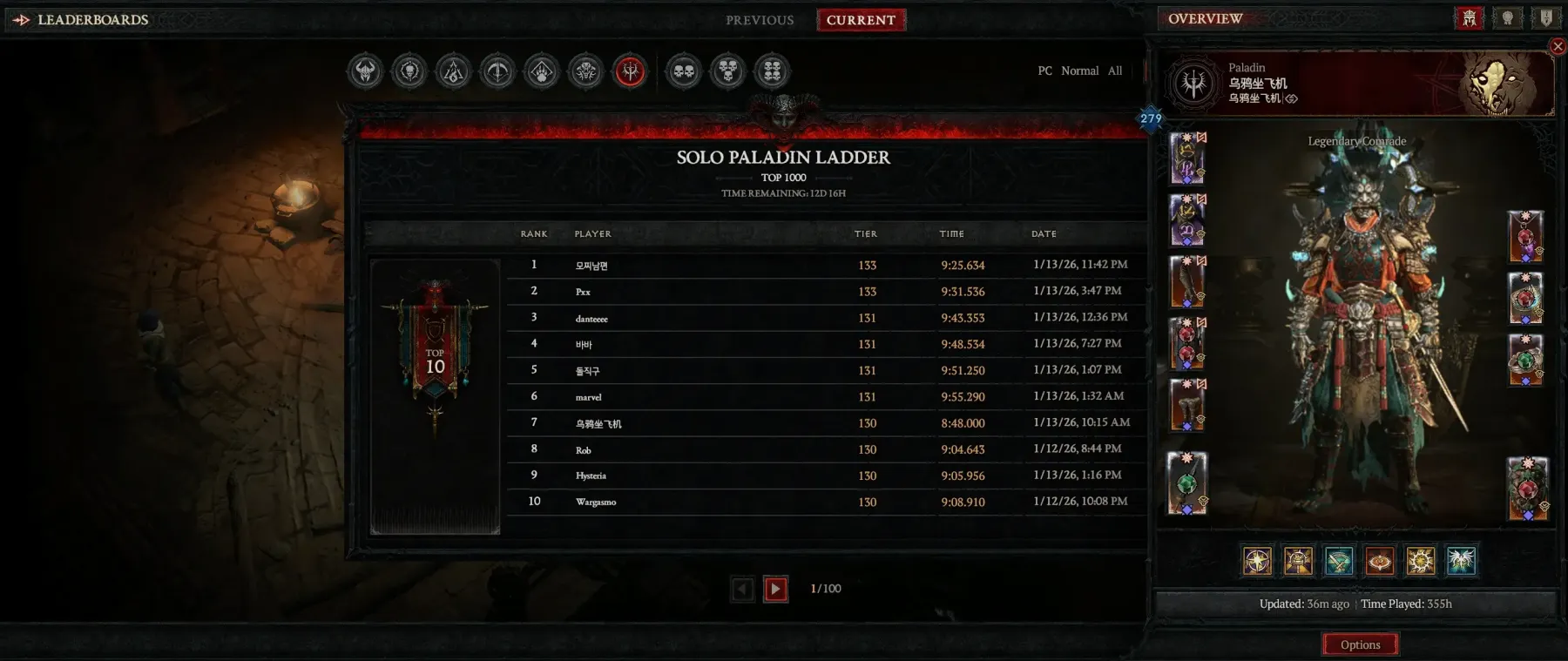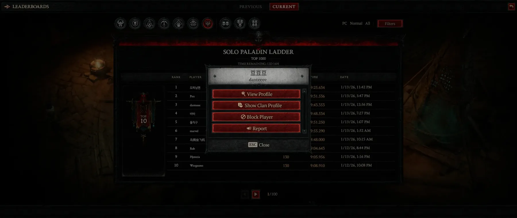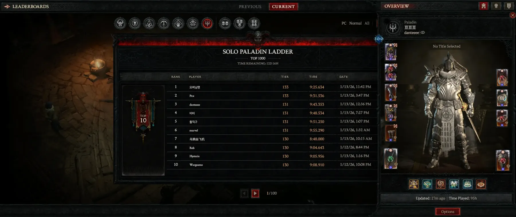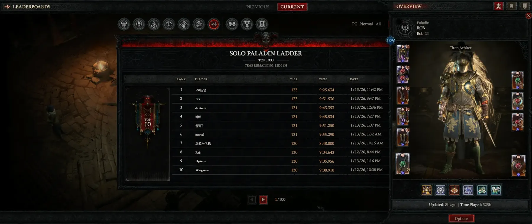 Ami a többi buildet illeti: Rob PTR-re épülő, majd a Patch Notes-ok alapán frissített listájában az S-tierben szinte csak Paladinok vannak, rajtuk kívül még egy Spiritborn is bekerült ide (a Leaderboardon ennek nyoma sincs), illetve A-tierben egy Barbarian (HotA) és egy Rogue (Heartseeker) van, de a valóság ezektől is eltér kicsit. Összességében az mondható el, hogy a Paladinokhoz képest a többiek sajnos a fasorban sincsenek, és ez világosan látszik a nemhivatalos Pit-leaderboardon is.