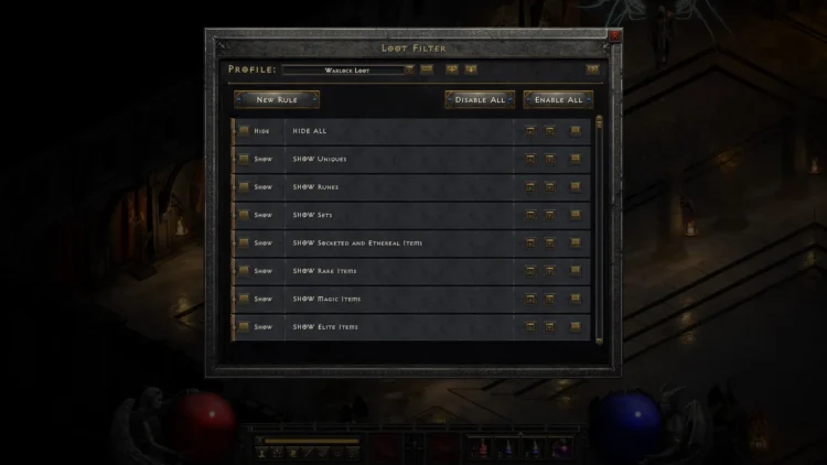 A Loot Filer teljes ellenőrzést biztosít neked arról, hogy milyen zsákmányra szeretnél összpontosítani, és mit szeretnél igazán megszerezni. Ezek a zsákmány-szűrők be vannak építve a játékba, így gyorsan beállíthatod őket, majd visszatérhetsz a izgalmas akcióhoz.