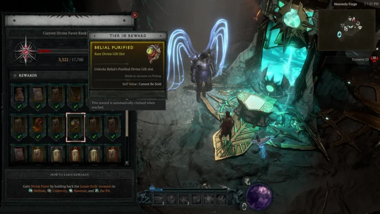 Minden romlott ajándék hely automatikusan feloldódik, a megtisztított szlotok azonban nem. Haladj előre a szezonális hírnév táblán, hogy feloldd a megtisztított ajándékok helyeit az isteni ajándékoknál.