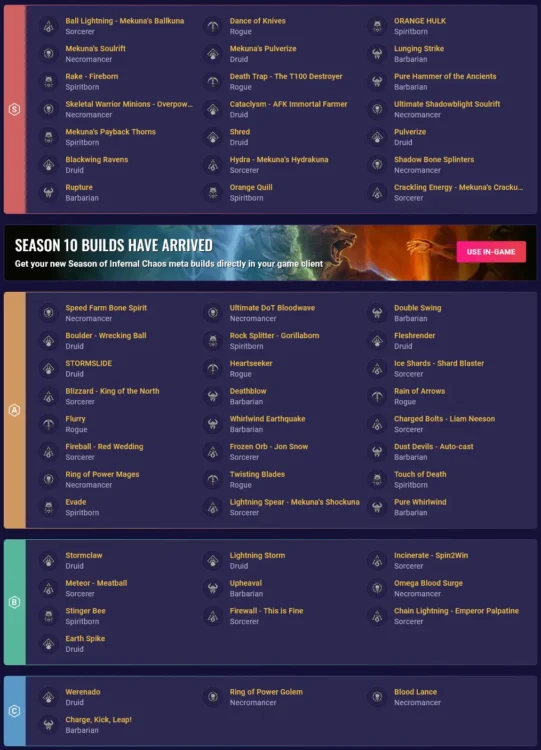 A Helltides.com nemhivatalos ranglistáján már feltűnt a build, Rob berobbantotta és már másolják a népek: a top 10-ben nyolc ilyen építmény is van már. Ráadásul úgy tűnik, hogy ezúttal nem a rendellenes működés okozza az erejét, mint a szépemlékű Poison Creeper druidánál, hanem az van, hogy egyszerűen csak mostanra számolták ki az ázsiaiak. Így viszont a sebessége és a farm-képességei miatt a Season 10 sztárja lesz.